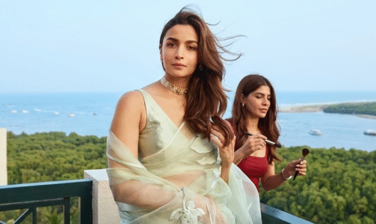 यह लुक आलिया भट्ट की साड़ी स्टाइलिंग की नई मिसाल बन गया है, जो ट्रेडिशनल और मॉडर्न फैशन का बेहतरीन मेल दिखाता है।