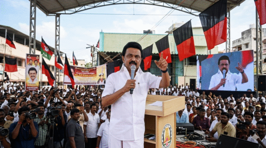 तमिलनाडु विधानसभा चुनाव 2026 में DMK, AIADMK और BJP गठबंधन के बीच त्रिकोणीय मुकाबला होने की संभावना है। स्टालिन की यह घोषणा DMK को आम जनता के बीच मजबूत स्थिति दिलाने की रणनीति का हिस्सा मानी जा रही है।
